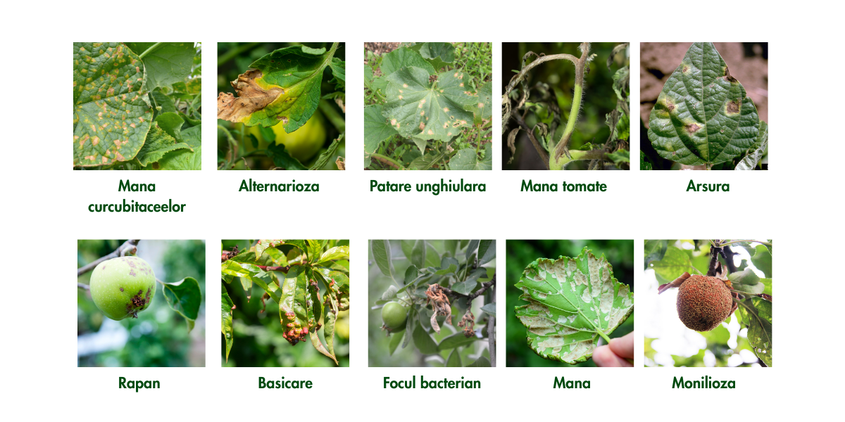 | Cultura tratata | Castraveti, Ceapa, Cires, Fasole, Gutui, Mar, Par, Piersic, Prun, Tomate, Visin, Vita de vie |